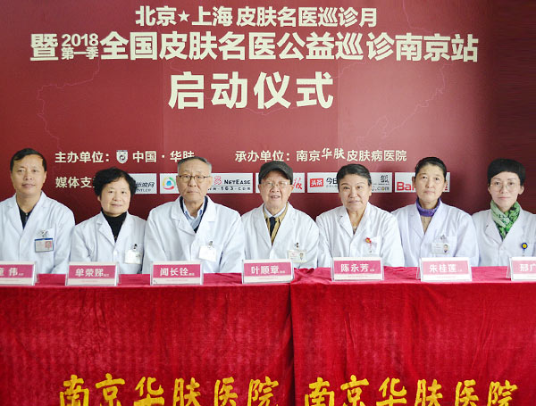 为积极响应国家卫计委“服务百姓健康行动”和“健康中国2030”号召,把人民健康放在优先发展的战略地位,努力全方位全周期保障人民健康。以实际行动践行“敬佑生命、救死扶伤、甘于奉献、大爱无疆”的崇高精神,让全社会共享优质医疗资源,切实方便群众就医,缓解群众看病难、看名医更难的问题,本着“专家到基层,群众多受益”的原则,“北京、上海皮肤名医巡诊月暨2018第一季全国皮肤名医巡诊南京站”启动仪式于2018年3月16日在南京华肤医院正式启动。